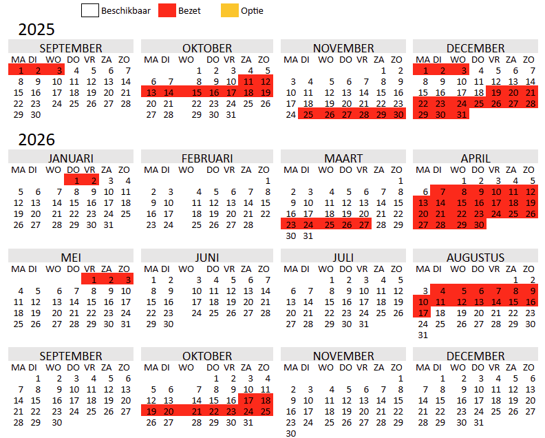 - Restantbetaling van 75% + borg (€350), 2 maanden voor aankomst